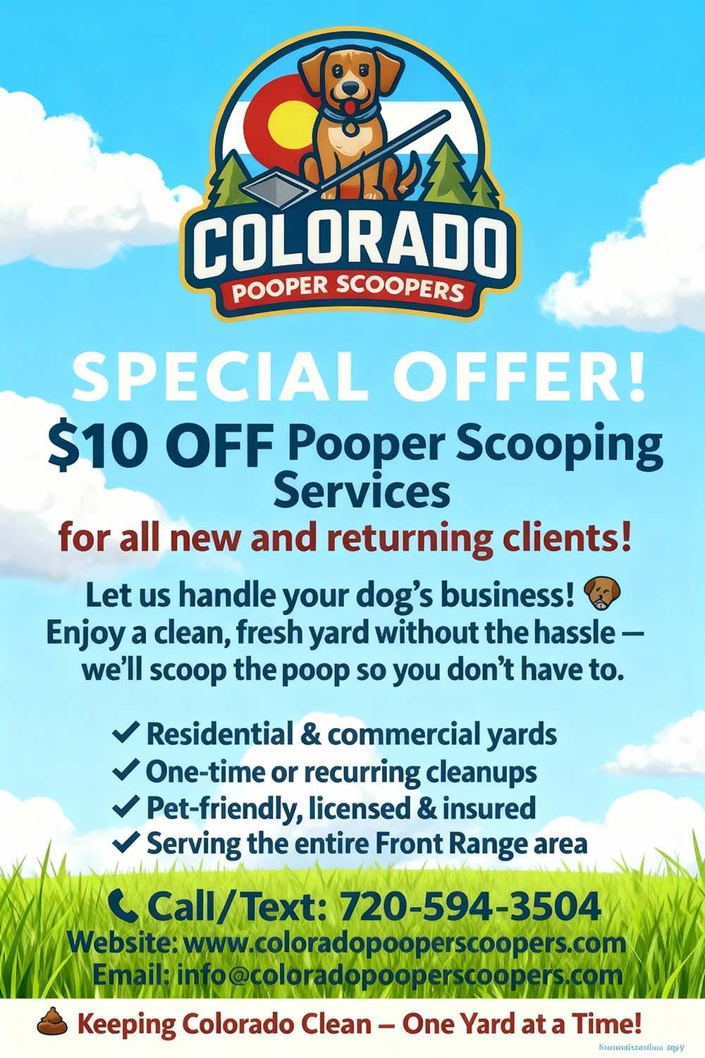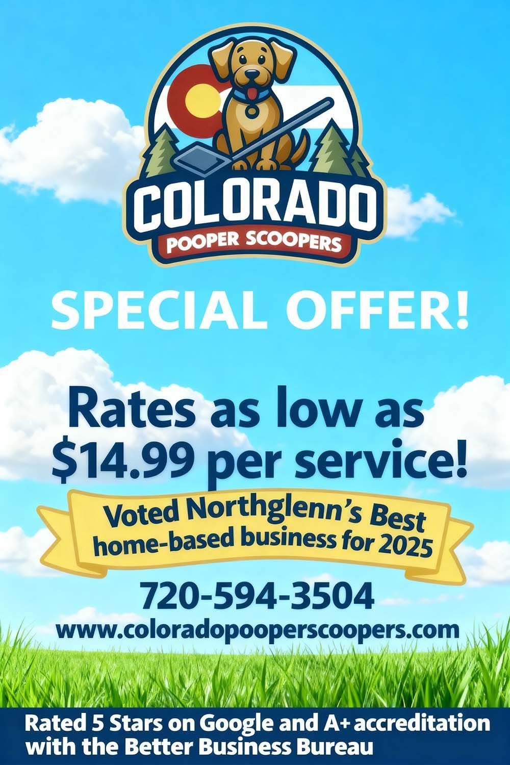 We offer pooper scooper services in Northglenn, Arvada, CO and surrounding areas